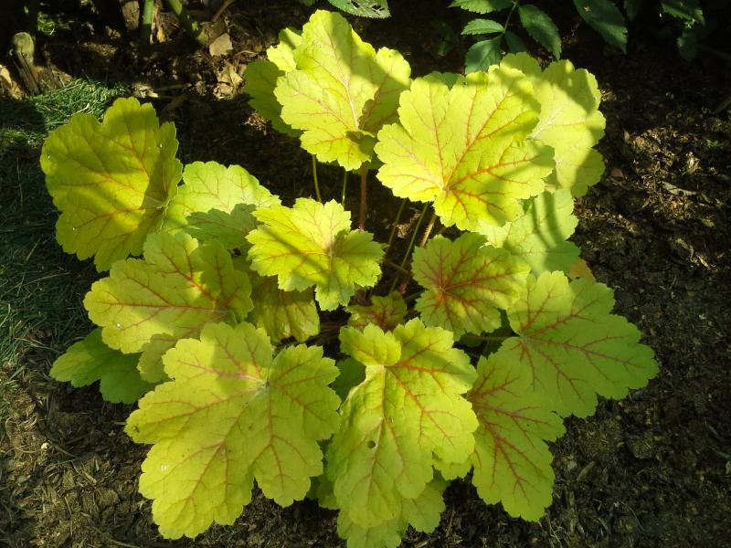 Рассада Гейхеры Электра (Electra) и ее золотые листья с красными прожилками станут неотъемлемой частью вашего ландшафтного дизайна. Декоративное растение: