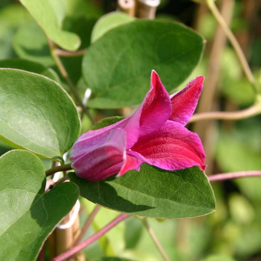 Саженцы Клематиса гибридного Sir Trevor Lawrence (Clematis) очень любят солнечные лучи. Поэтому его лучше всего высаживать на солнечное место, которое надежно защищено от ветра и сквозняка. Почву необходимо подбирать рыхлую, плодородную. В высоту лиана данного сорта достигает трех метров. Цветет Сэр Тревор Лоуренс с июня по август месяц. В этот период растение покрывается цветами бордово-розового цвета, которые по форме напоминают тюльпаны. Данный сорт лианы отлично подойдет для выращивания около арок, пергол или другими конструкциями в саду. Наиболее эффектно выглядит в переплетении с карликовыми деревьями или кустарниками.